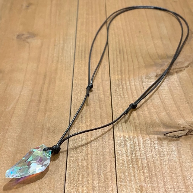 ーー神話の時代 天界と冥界の最終戦争(ラグナロク)の際に 世界に飛散したとされるクリスタルの欠片 無色透明なクリスタル どの属性も持たないが 様々な合成素材と成り得る Size:Chain length80cm Pendant 30mm*15mm Material:Crystal
