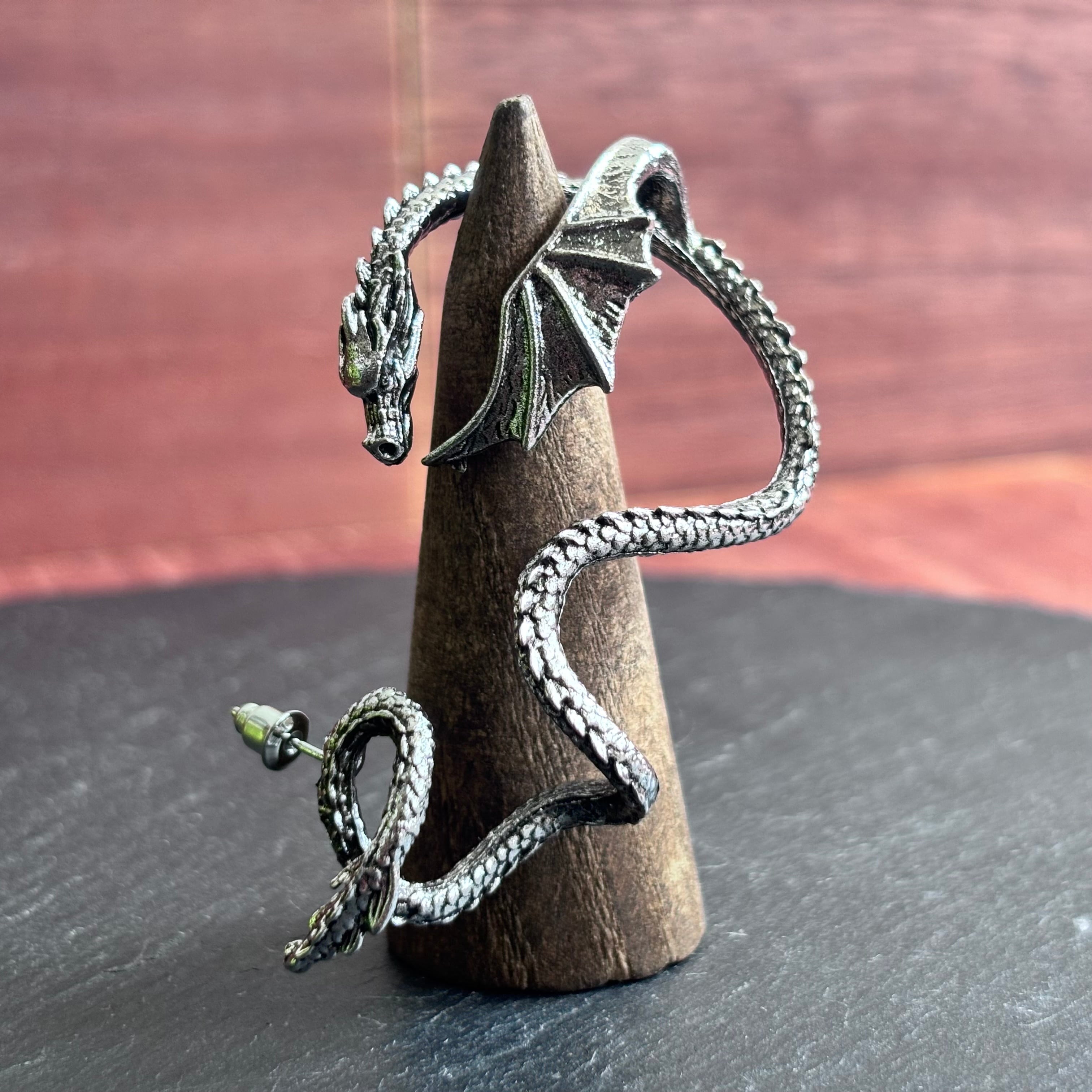 囁き竜の耳飾り『白銀のウィスパードラゴン』【左耳ピアス】