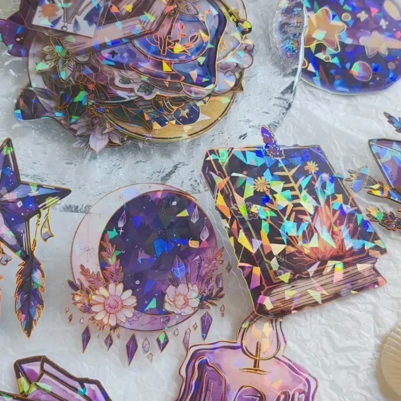 パープルを基調とした幻想的なクリアステッカーが30枚