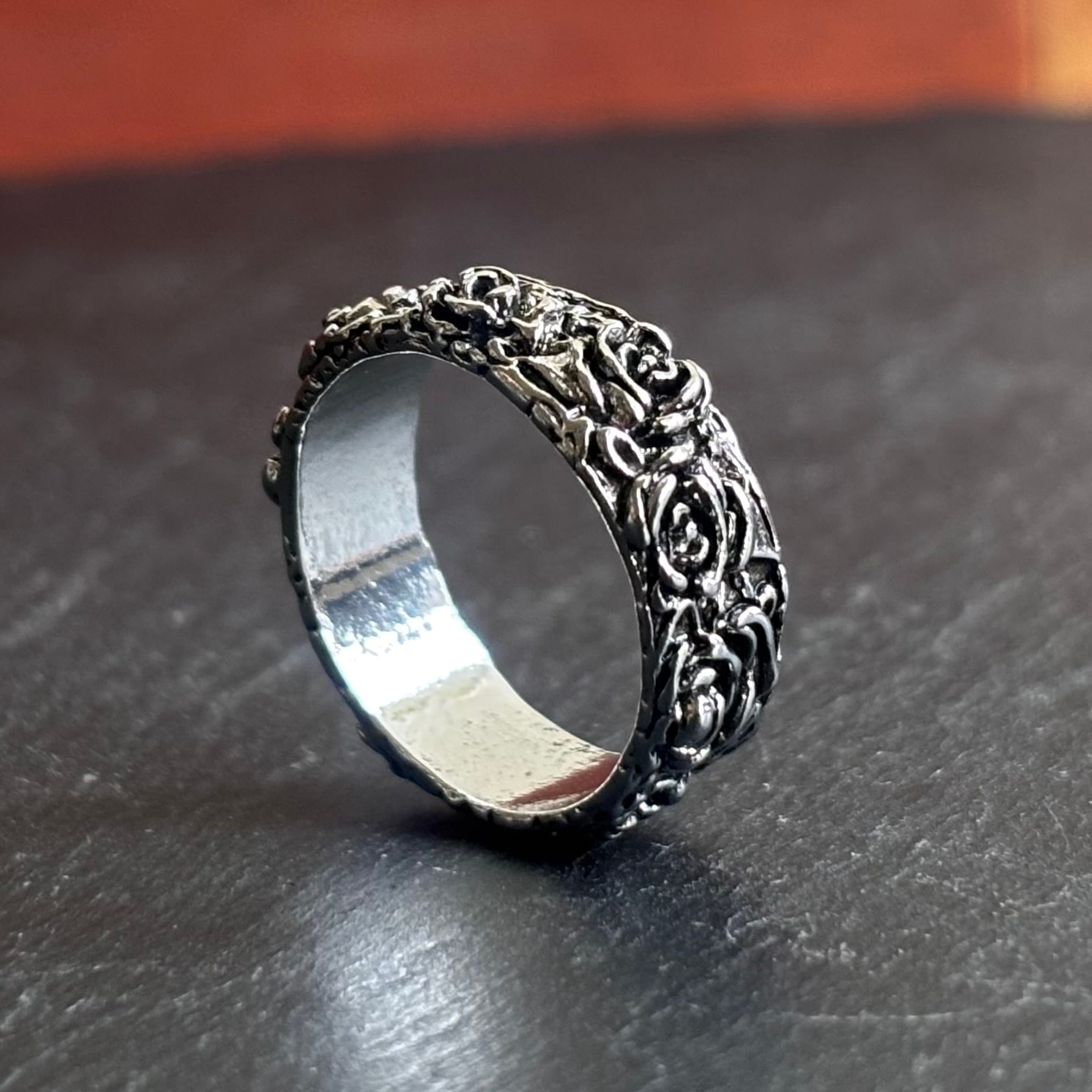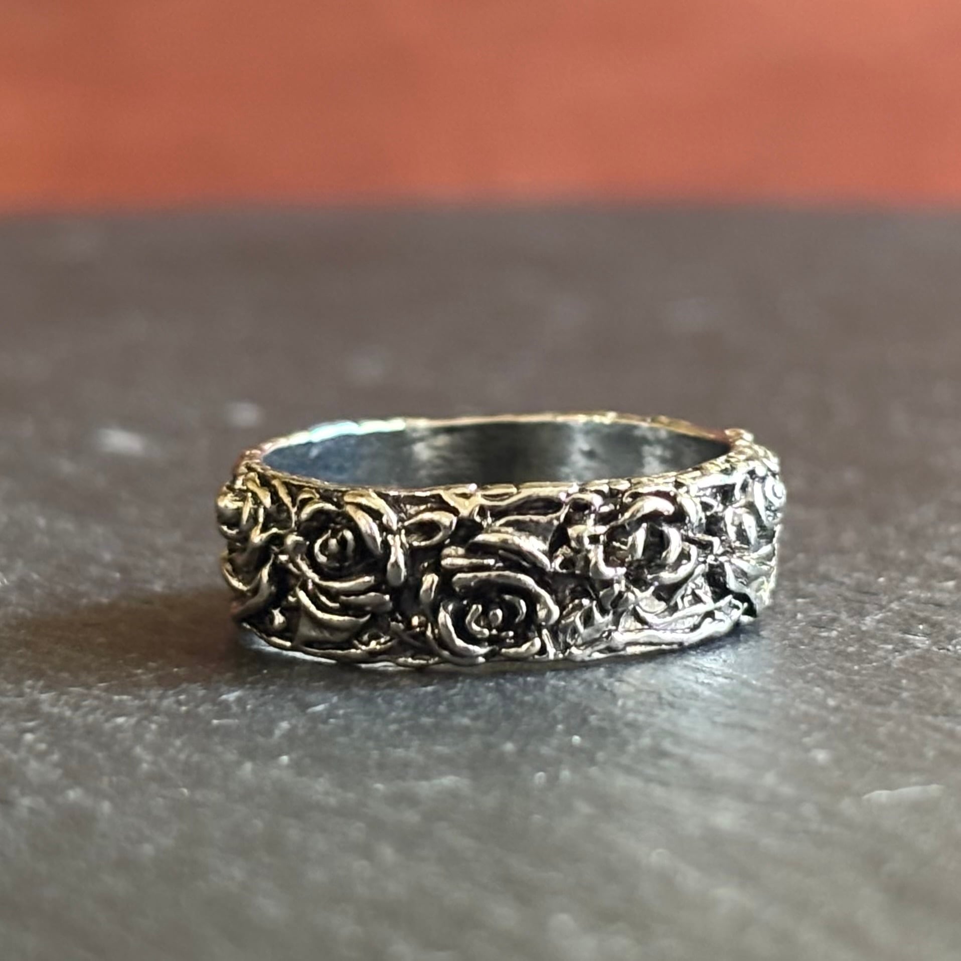 指輪に刻まれた複数の薔薇は