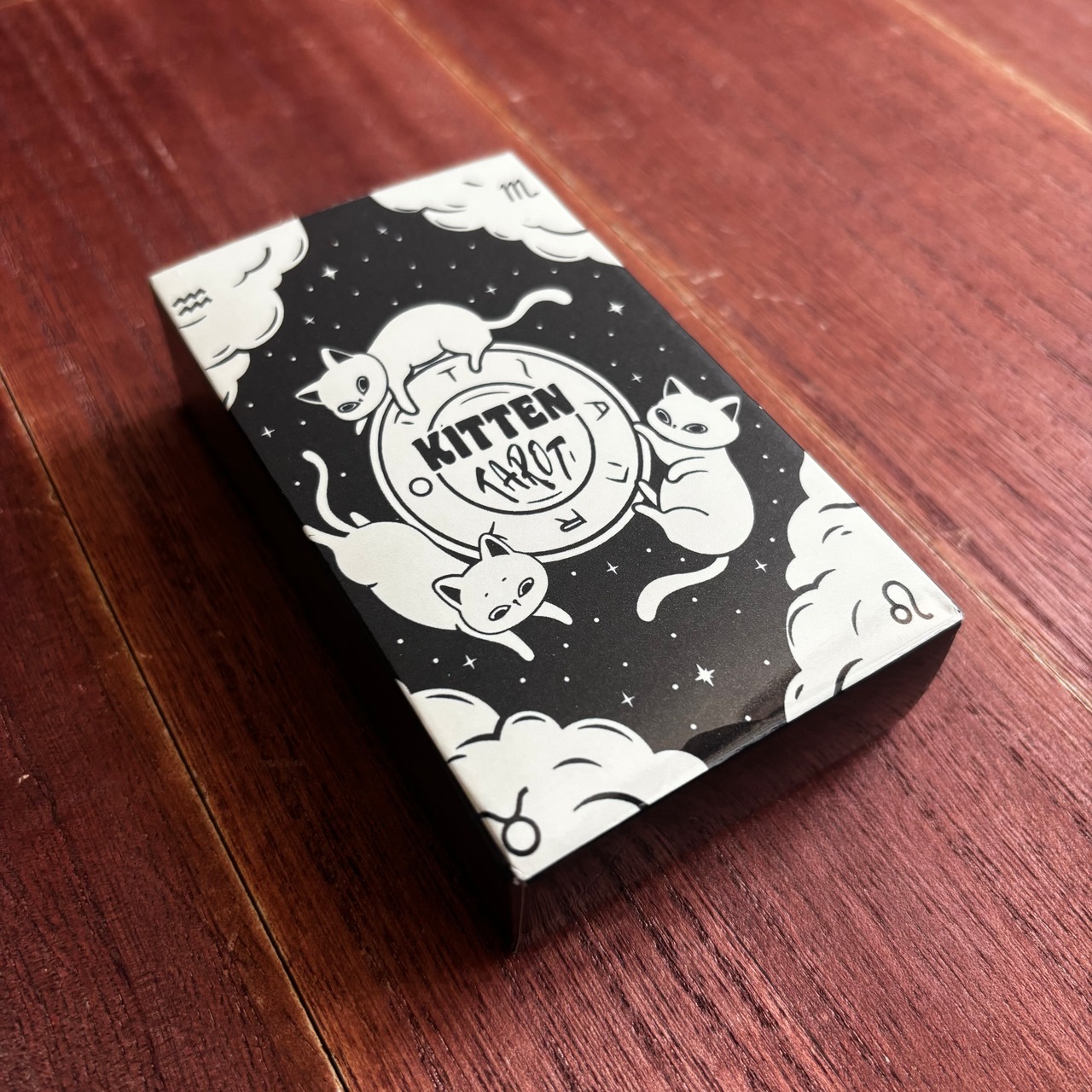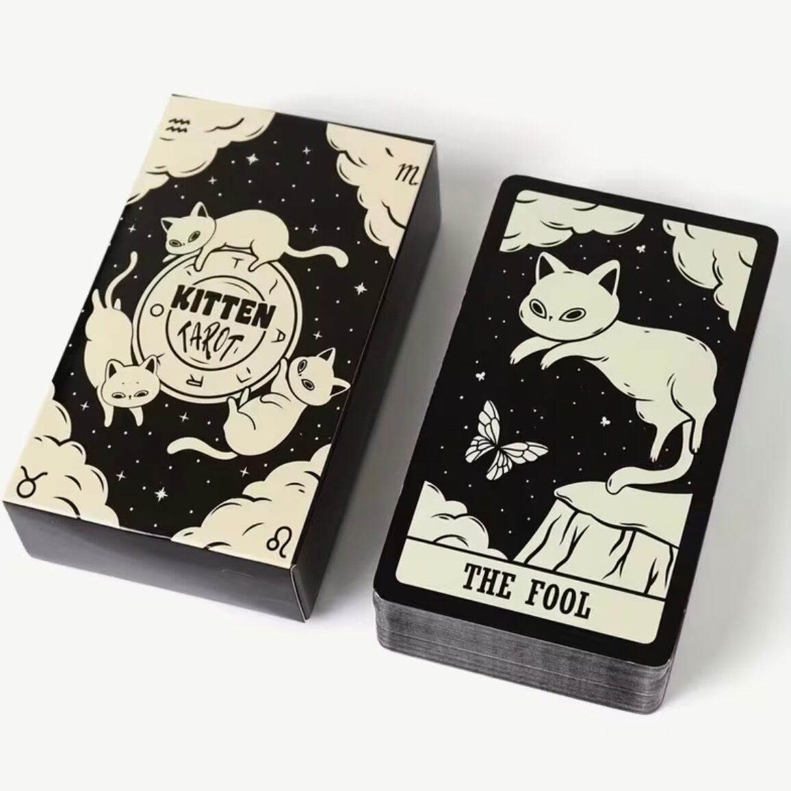 子猫たちが神秘の象徴を優しく描き出すタロットカード