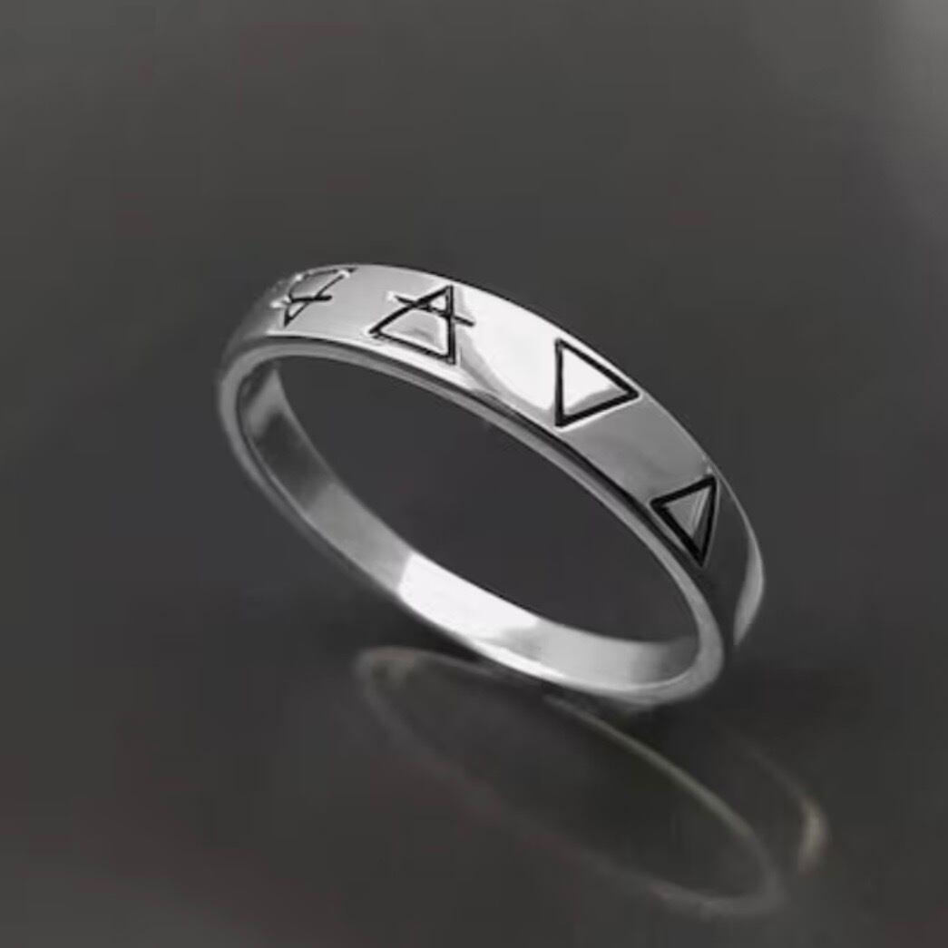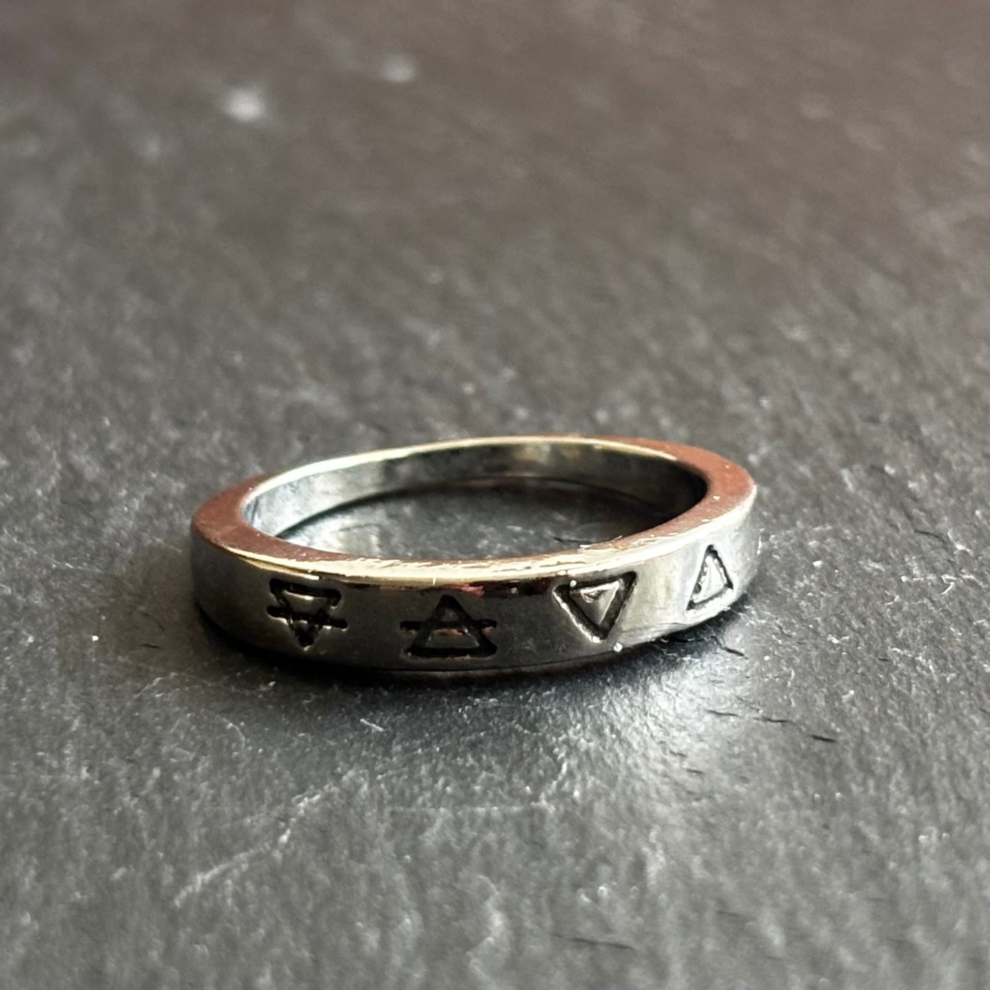 四大元素の象徴が刻まれた錬金術の指輪は