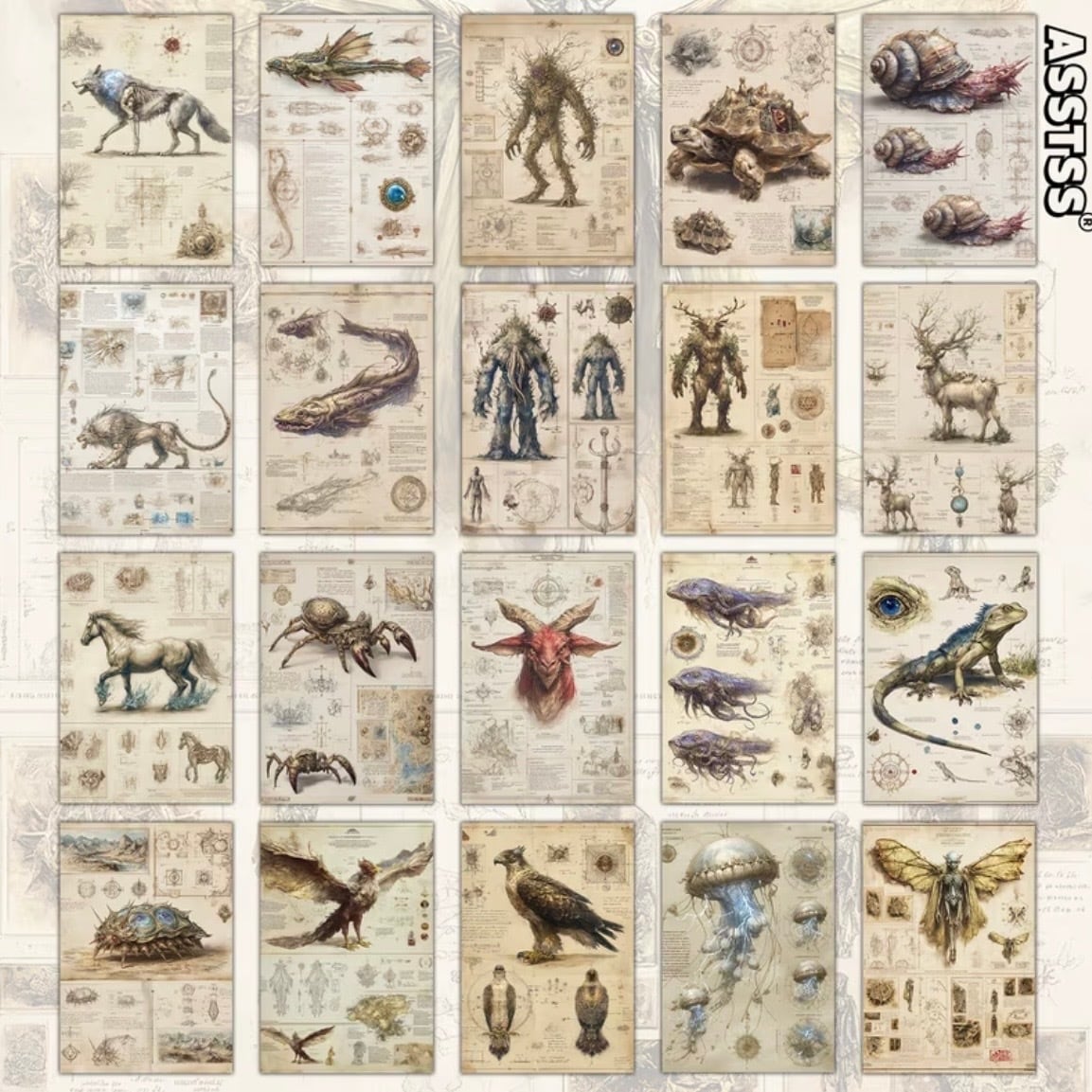 架空生物・魔物・幻想種を対象とした観察資料イラストカードである。各個体は、外見的特徴・構造・生態的考察を含む図版として構成され、古典的図鑑様式を模している。